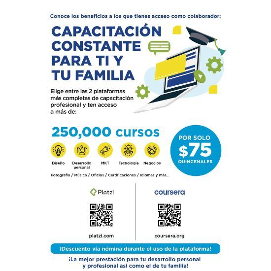 Con solo $75 pesos quincenales, la cual se descuenta vía nómina durante un año del uso de la plataforma.