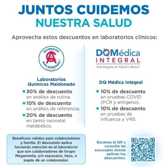 Aplica para colaborador (a) y familiar directo, debe presentar el gafete de empleados Megamedia o DYPAQ.